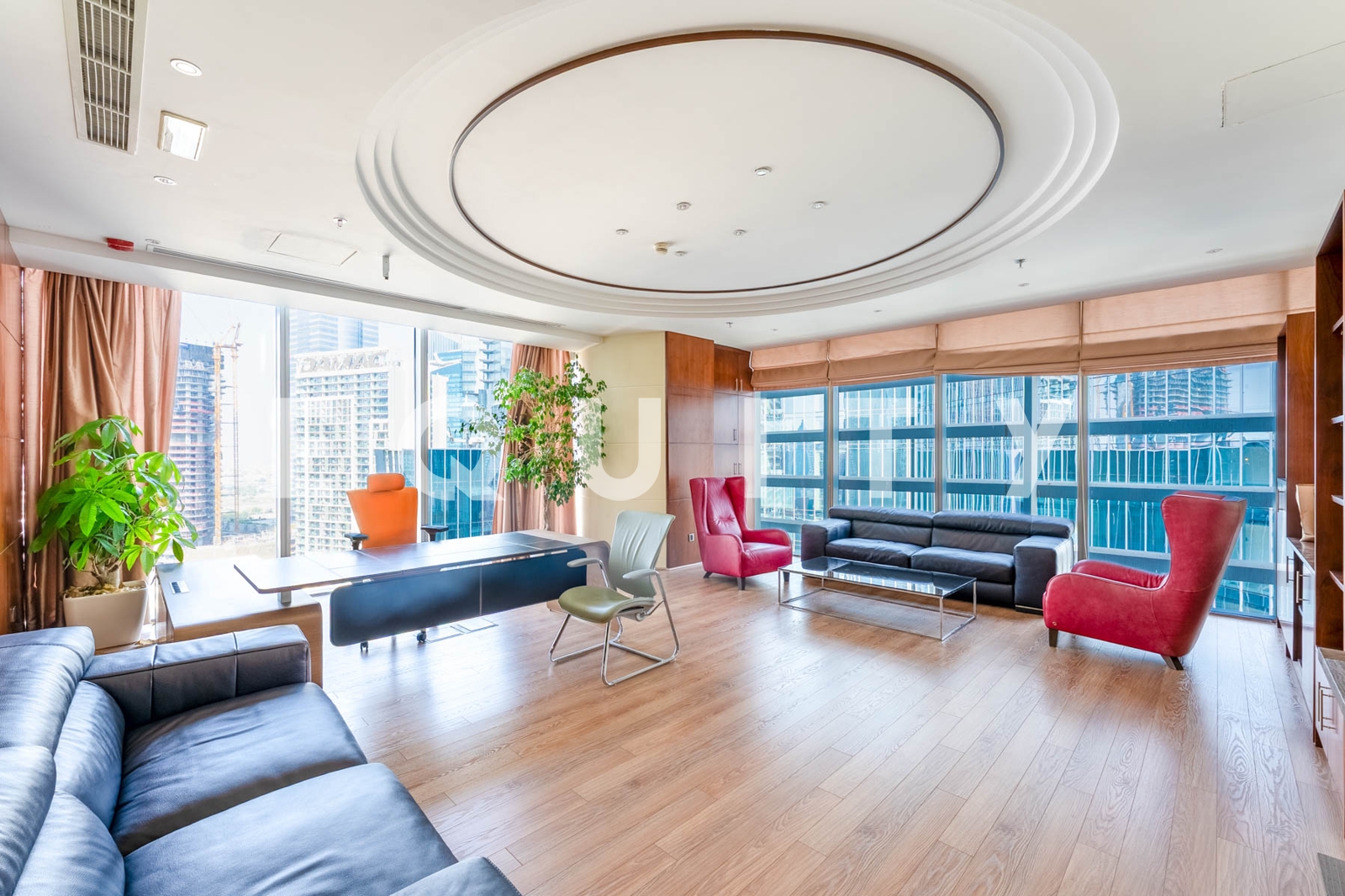 Stunning Views: Expansive windows offering breathtaking city views and natural light.