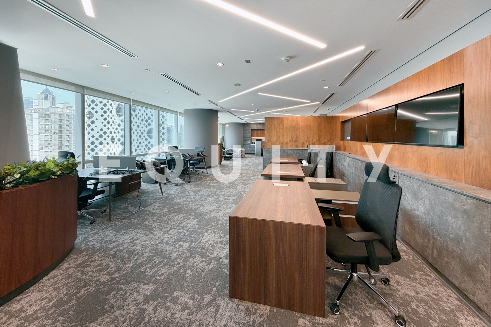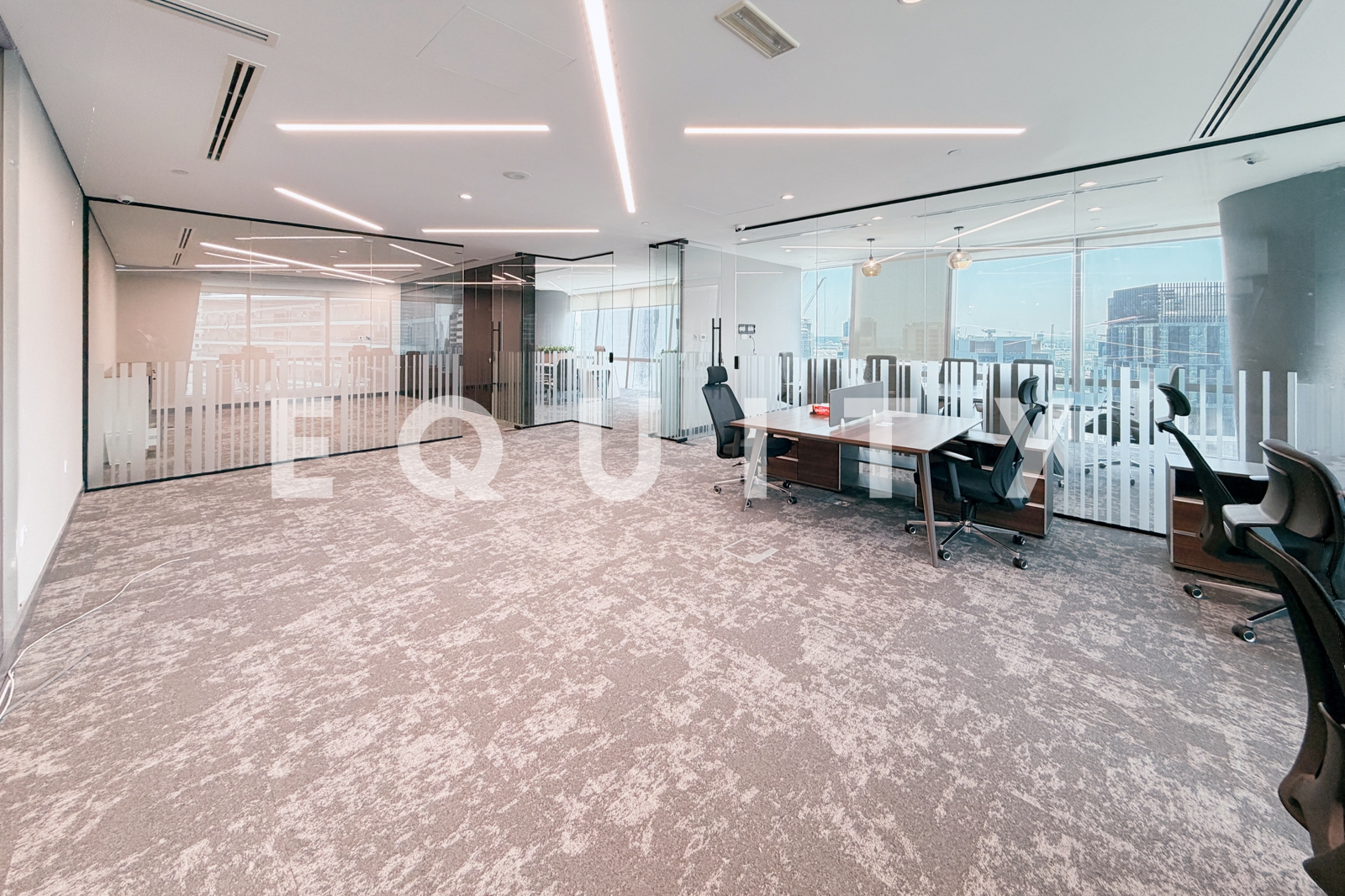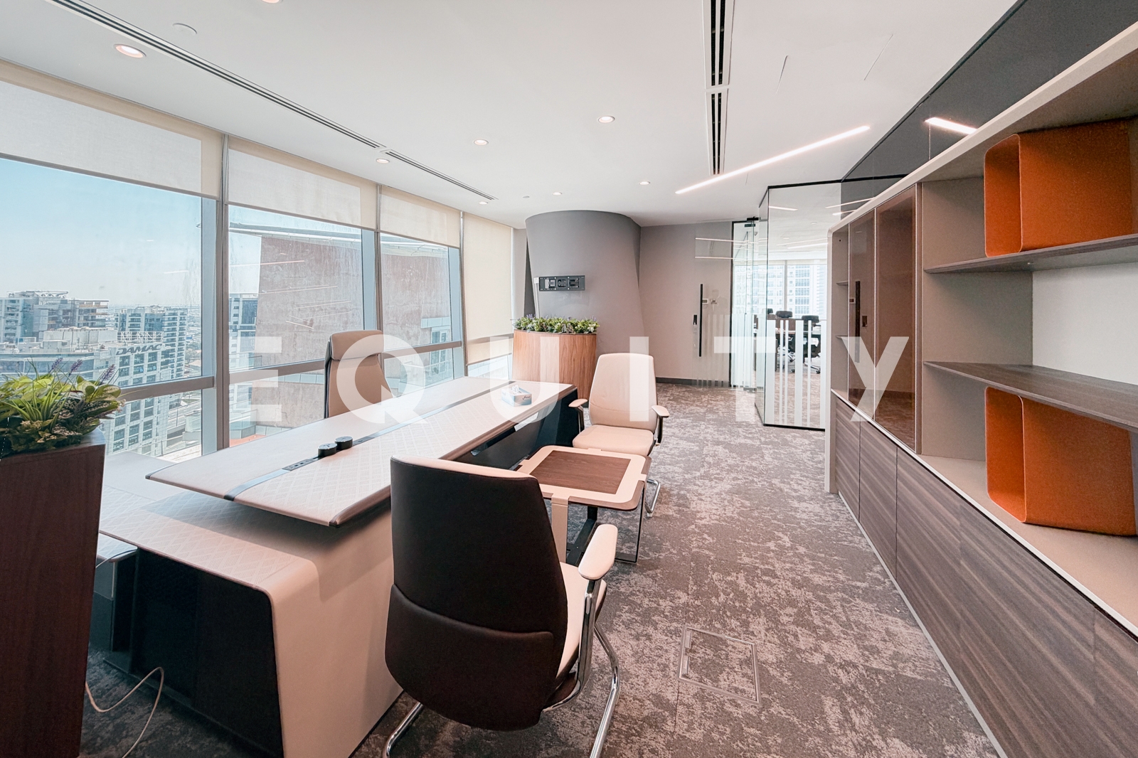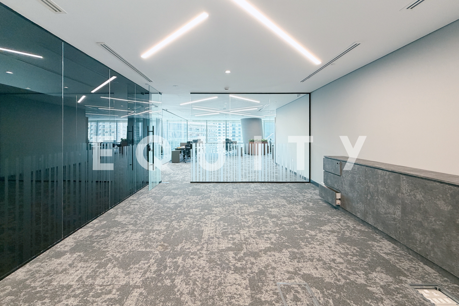 Equity is pleased to present this turnkey office in Ubora Tower, Business Bay. The office features a spacious reception and seating area, pantry, boardroom, CEO cabin, executive office, and a large open-plan workspace—designed to support both functionality and a professional business environment.